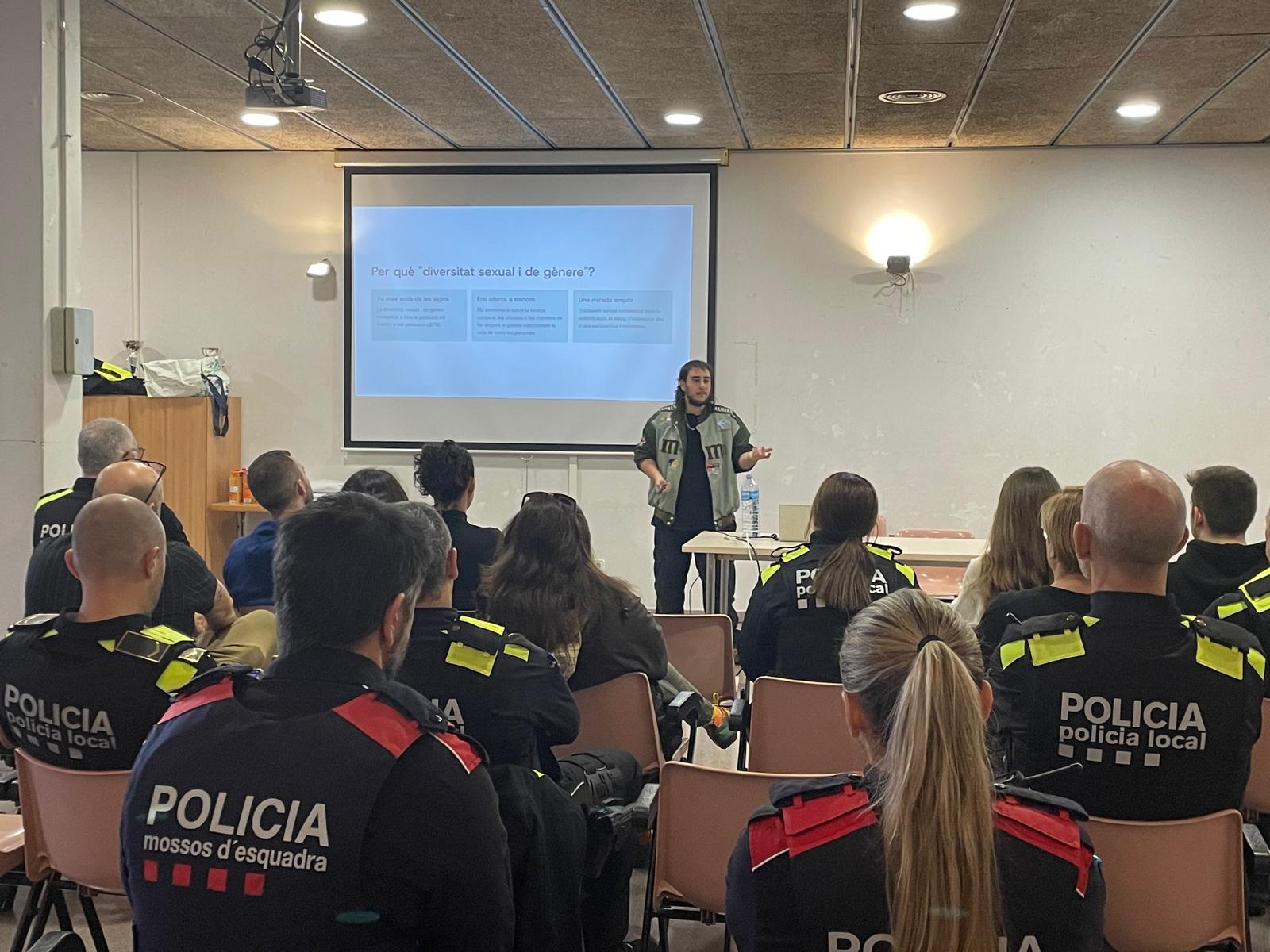 Aquest dijous, 13 de novembre, la Sala Serra de la Cooperativa ha acollit una formació en l’àmbit LGTBI+ adreçada especialment a membres dels cossos de seguretat. El curs, a càrrec del Punt LGTBI+ Parets, té l’objectiu d’aportar eines als agents per millorar l’atenció i el tracte amb les persones que formen el col·lectiu LGTBI, així com detectar més fàcilment i poder prevenir delictes d’odi o discriminació. La formació està emmarcada en el programa d’activitats de la 25a campanya Prou d’hòsties contra les violències masclistes i LGTBI-fòbiques.